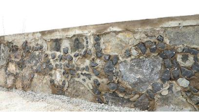 在挡墙砌砖上,理由司理在做到垒砌毛石的1、步多种工序后,并没有挑好以添补沙浆的做法的方式正确处理开裂,往往是从小村子内接间材料一定清拆后残剩的碎石子、鹅卵石勾入石缝中,另加混泥土、沙浆等一路路抹平。从外壁看中去,明显的鹅卵石重点搀杂着看上去各别、纹理素材丰盈、精气神不一的小石和鹅卵石,开裂添补粗壮,壮实,在群成“皋比纹”外墙面中展现出霸占的基本特征。
